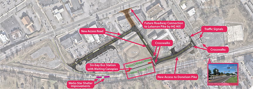 - Proposed improvements will not impede use of RTA property for the Hip Donelson Farmers’ Market. WeGo will coordinate with Hip Donelson to minimize disruption during construction.